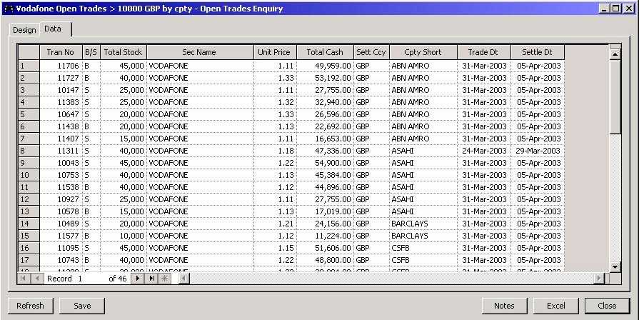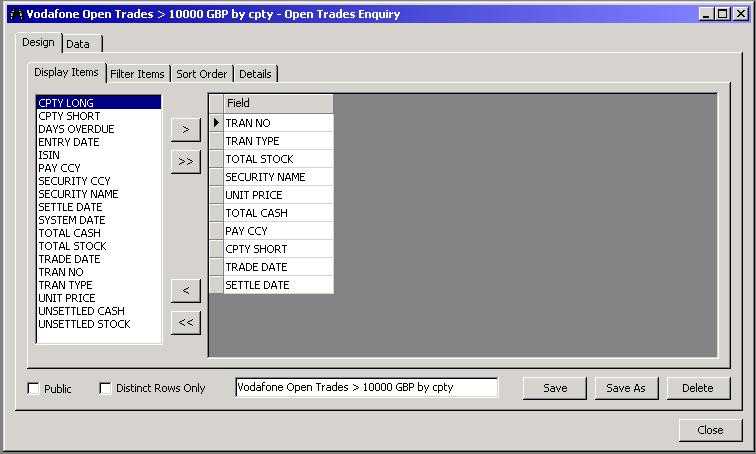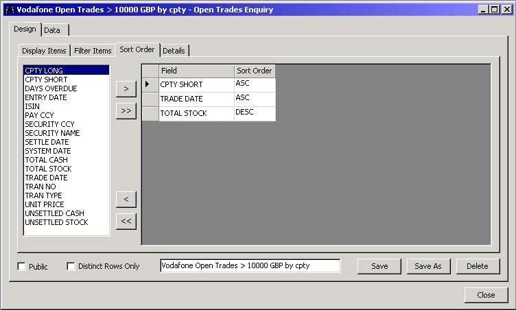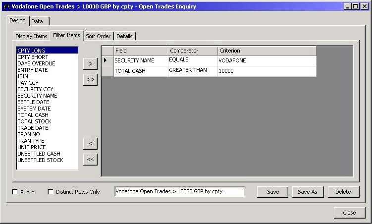 Filter the data to return only a specific required subset, e.g. on Security, Counterparty or a cash value.