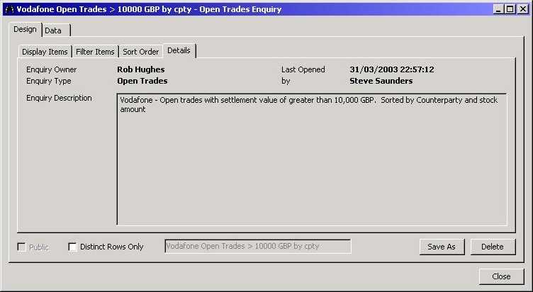 Here is a typical schedule of reports used at a brokers for reporting on a trading portfolio. Reports can be created by one user and shared with others.
