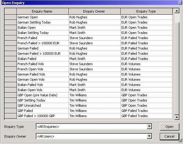 A list of existing enquiries which can be opened by any user.
